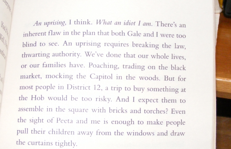 If you don’t see what I mean, take a look at this shot of my British edition of Catching Fire. Note how rounded the letters are, which causes them to take up more horizontal space on a line: