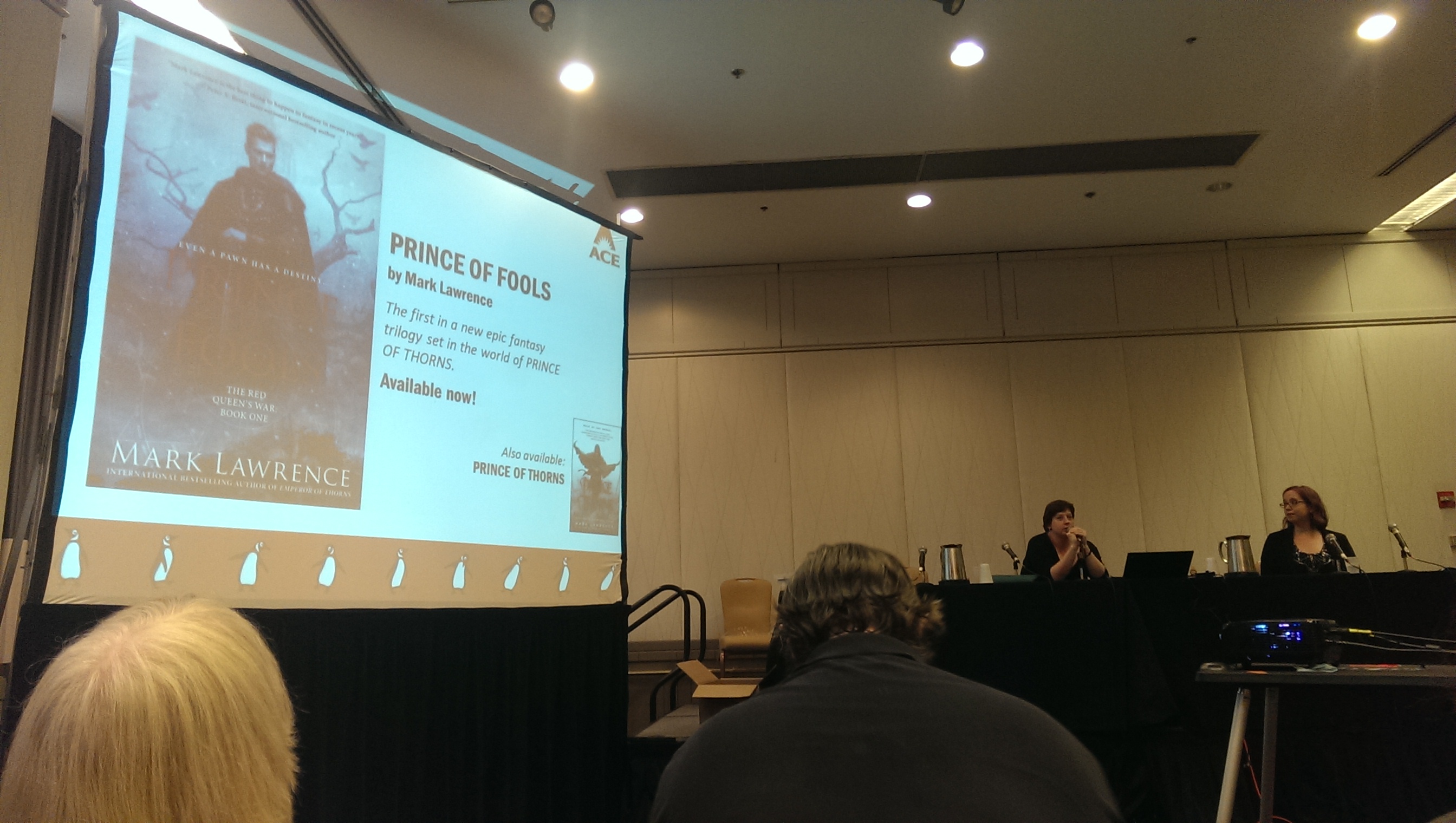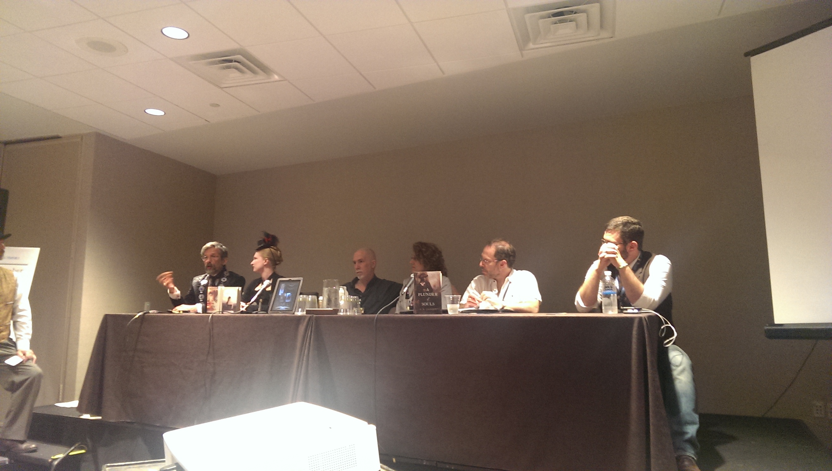 And then there was the Writer’s Track. Nancy Knight and cohorts did a great job organizing the panels, attracting guests and choosing topics, but too many of them didn’t really speak to me. Maybe I should see this as a positive, but I’m not at the point anymore where I’m interested in learning about showing vs telling or why it’s necessary for a story to have conflict; been there, done that. Not that there isn’t always more to learn or that some of the panels weren’t insightful (the “Catastrophes of Publishing” was a highlight, with Elizabeth Moon and Janny Wurts holding some serious court and dishing out knowledge like it was gruel at a Dickensian orphanage), but when you’re sitting in a room full of people and the moderator says, “who here wants to write but hasn’t yet written anything?” and more than a fair number of hands go up, that’s when the “good for them, but what the hell am I doing here?” feeling kicks in.