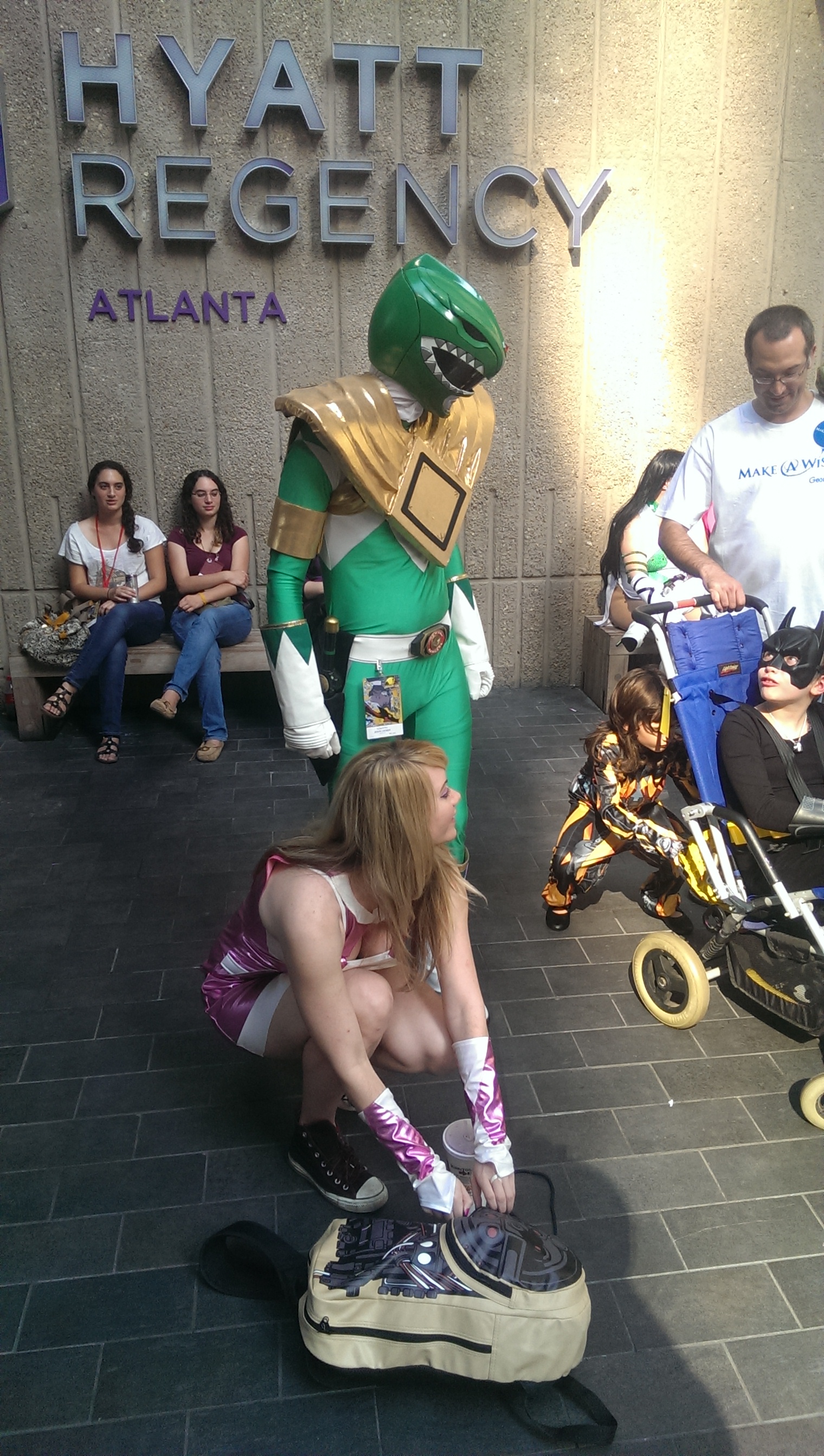 Anyway, this is turning into bit of a waaaah-fest, so I’ll end with some positive impressions. The con was impeccably well organized and staffed. The attendees were welcoming and polite despite the sardine-can circumstances, and things stayed pretty clean, an encounter or two with a sinkful of alcohol-induced vomit notwithstanding. Everyone who I gave a free book to was delighted. As it was last year, being in the presence of so many creative professionals has inspired me to write more (though my energy levels have yet to catch up with my enthusiasm). The food at the Peachtree Center was good. I am not ill (yet). Arriving Wednesday morning and leaving Sunday evening meant my flights were comparatively empty and completely pleasant. The Alternate History track was awesome and a few of the panels provided some good hints for a project which may be in my future. And the costumes…oh Lord, did I mention the costumes? Here, take a look: