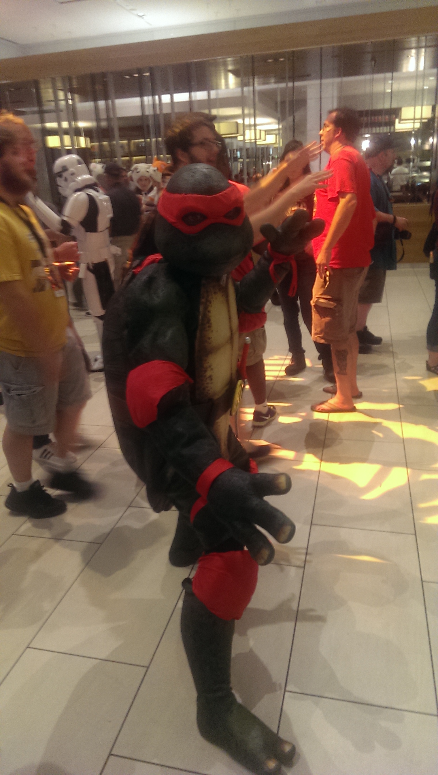 Not that there’s anything wrong with that! I did a fair bit myself at various points with some co-workers, and there is an undeniable excitement to being on the floor, gawking at the costumes as the crowd pushes you along like a barrel over Niagara falls. I’ve seen cosplay before, Worldcon had its fair share, but this isn’t just cosplay, it’s fucking amazing cosplay, and it really needs to be experienced in person to understand why people devote so much time and energy to it. And now I get it, I really really do. But for me personally, I can’t justify the time away from my family just to have fun for four days. I need some kind of payoff in terms of networking or learning, and this is where things get muddy, because quantifying either of those things, or even knowing whether I did my best to pursue them, is next to impossible.